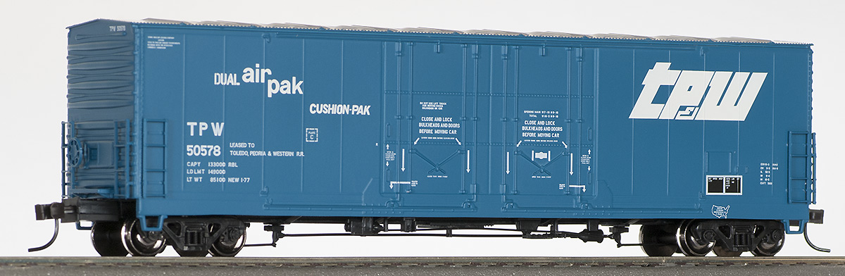 53' стальной товарный вагон Evans с двойными дверями. Серия Master. Принадлежность Toledo, Peoria & Western # 50578