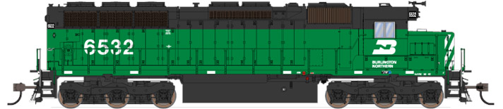 Тепловоз EMD SD45 с низким капотом. Установлен цифровой звуковой декодер. Серия Paragon 3. Принадлежность Burlington Northern #6532