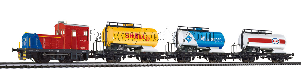 Набор из маневрового тепловоза V 14.03 и трёх цистерн ARAL, SHELL, ESSO . Эпоха III