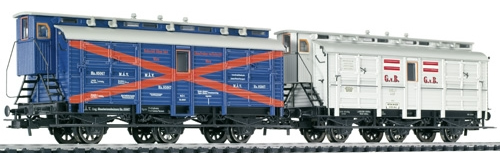 Два вагона для перевозки лошадей: G.v.B. Coeln 4127, принадлежность K.P.E.V и Rothschild 85067, принадлежность M.A.V. Принадлежность M.A.V/ K.P.E.V. Эпоха I