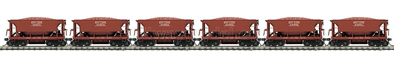 Набор из шести 70-тонных вагонов для перевозки руды (т.н. вагоны “Ore Jennies”) с грузом. Принадлежность Soo Line