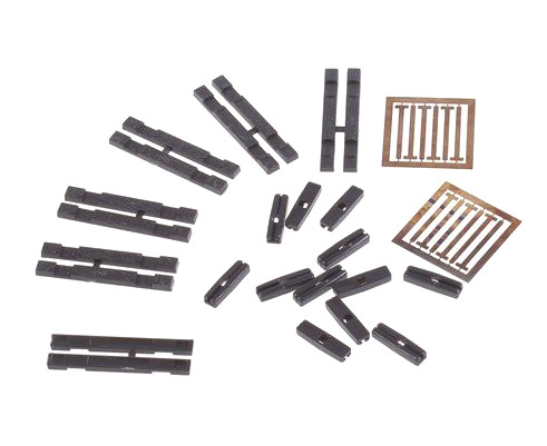 Соединители переходные (обычные и изоляционные) для соединения рельс высотой 1,9 мм (код 75) с рельсами высотой 2,5 мм (код 100). Отлиты из пластика с отдельными металлическими вставками, могут использоваться либо для изоляции, либо там, где требуется электрическая непрерывность. В комплект входят специальные шпалы для поддержания правильного расстояния между соединением.